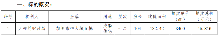 受天柱县财政局委托,本公司于2021年12月28日(星期二)下午14∶30时,在凯里市环城东路丽晶天大酒店斜对面本公司三楼会议室,对以下标的物按现状现样进行公开拍卖。