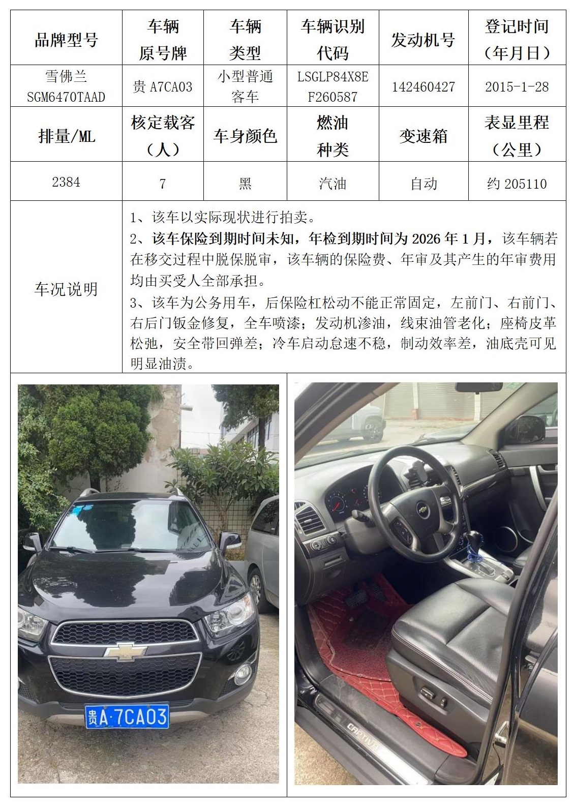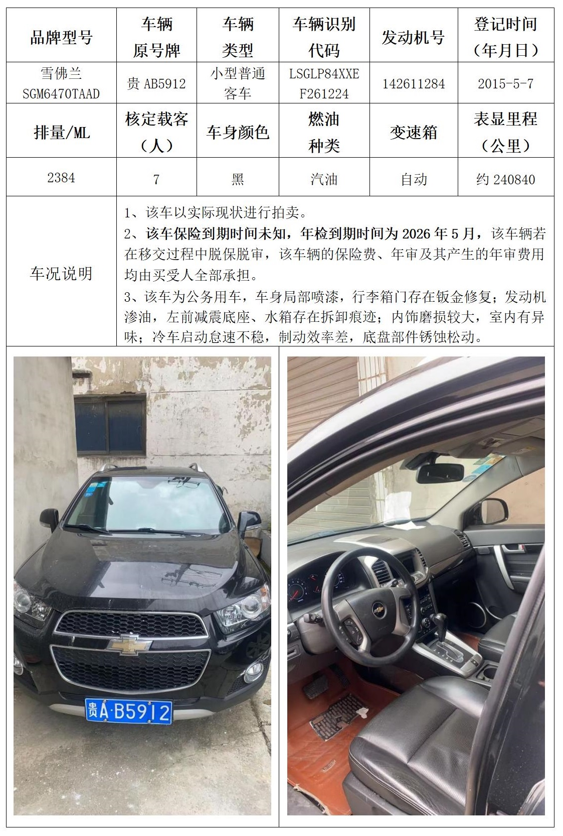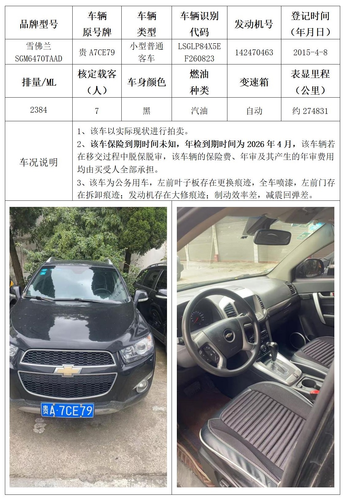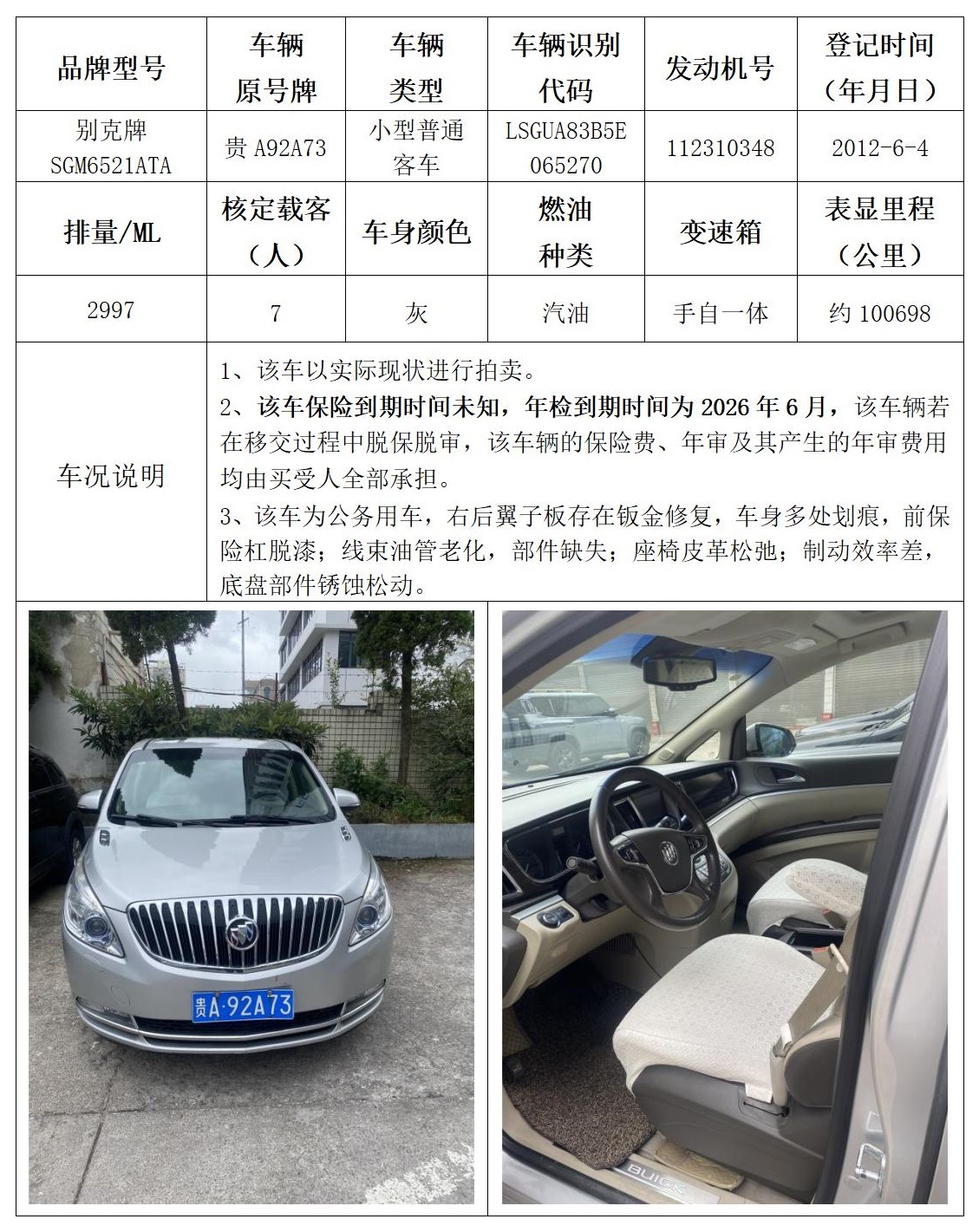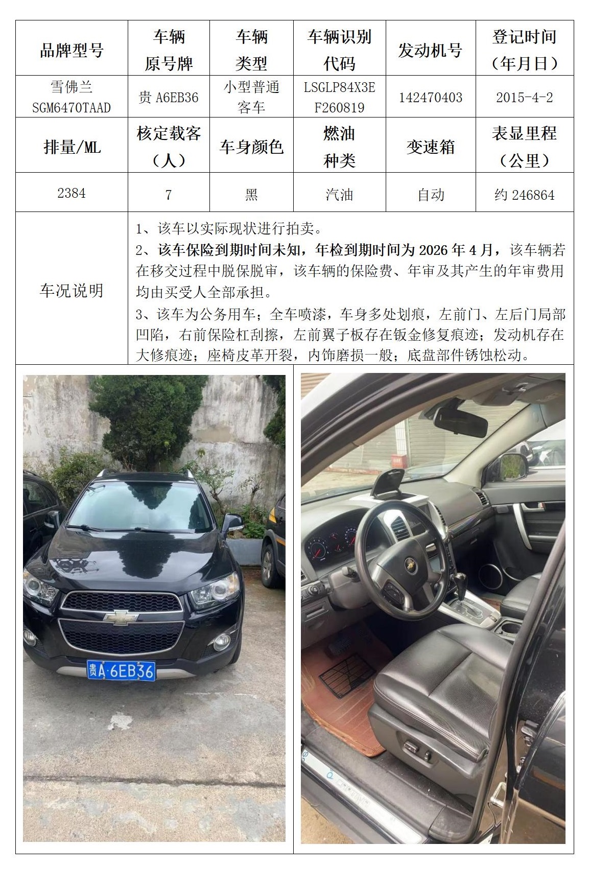 拍品编号1:雪佛兰牌小型普通客车5辆、别克牌小型普通客车1辆(整体拍卖)