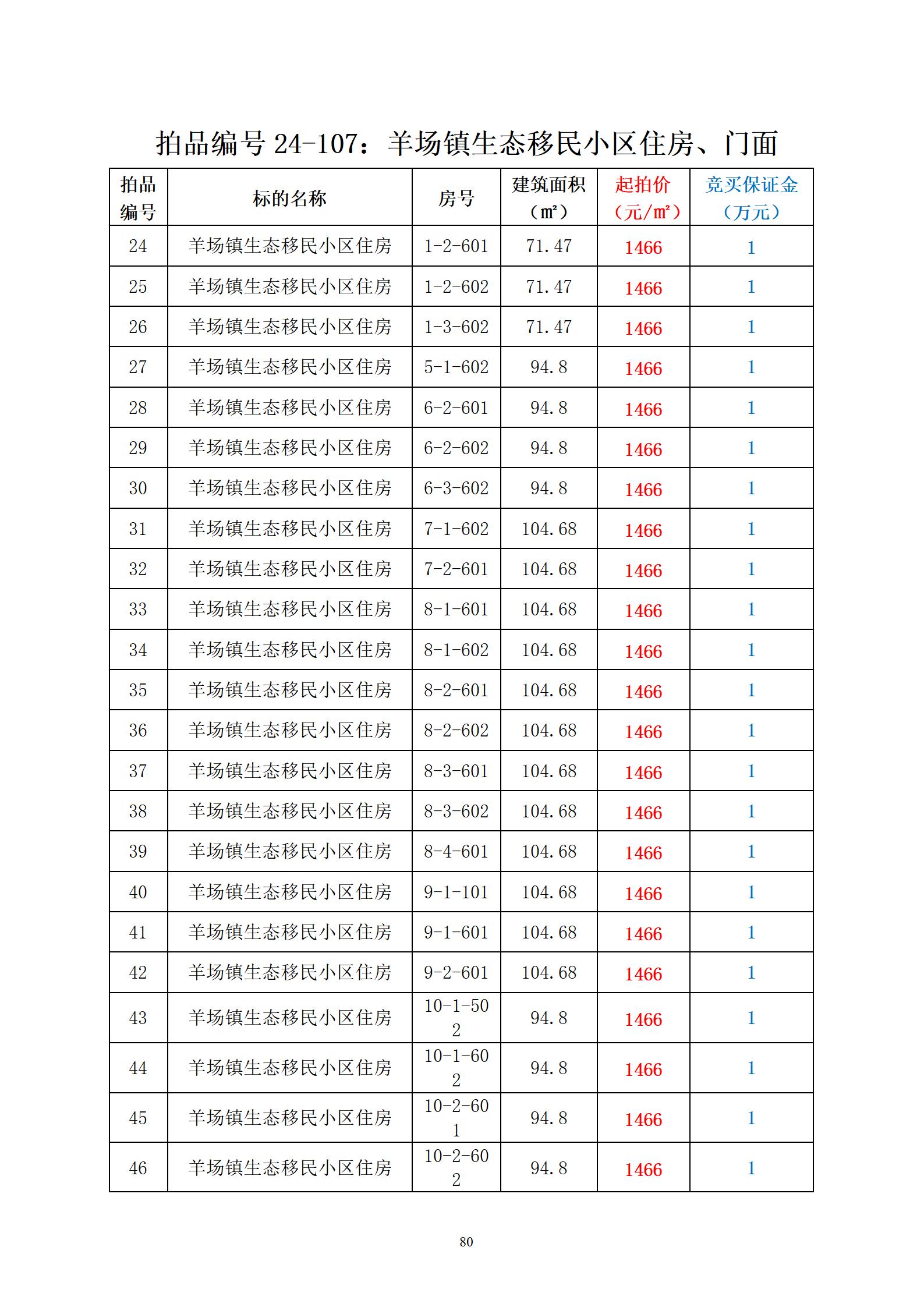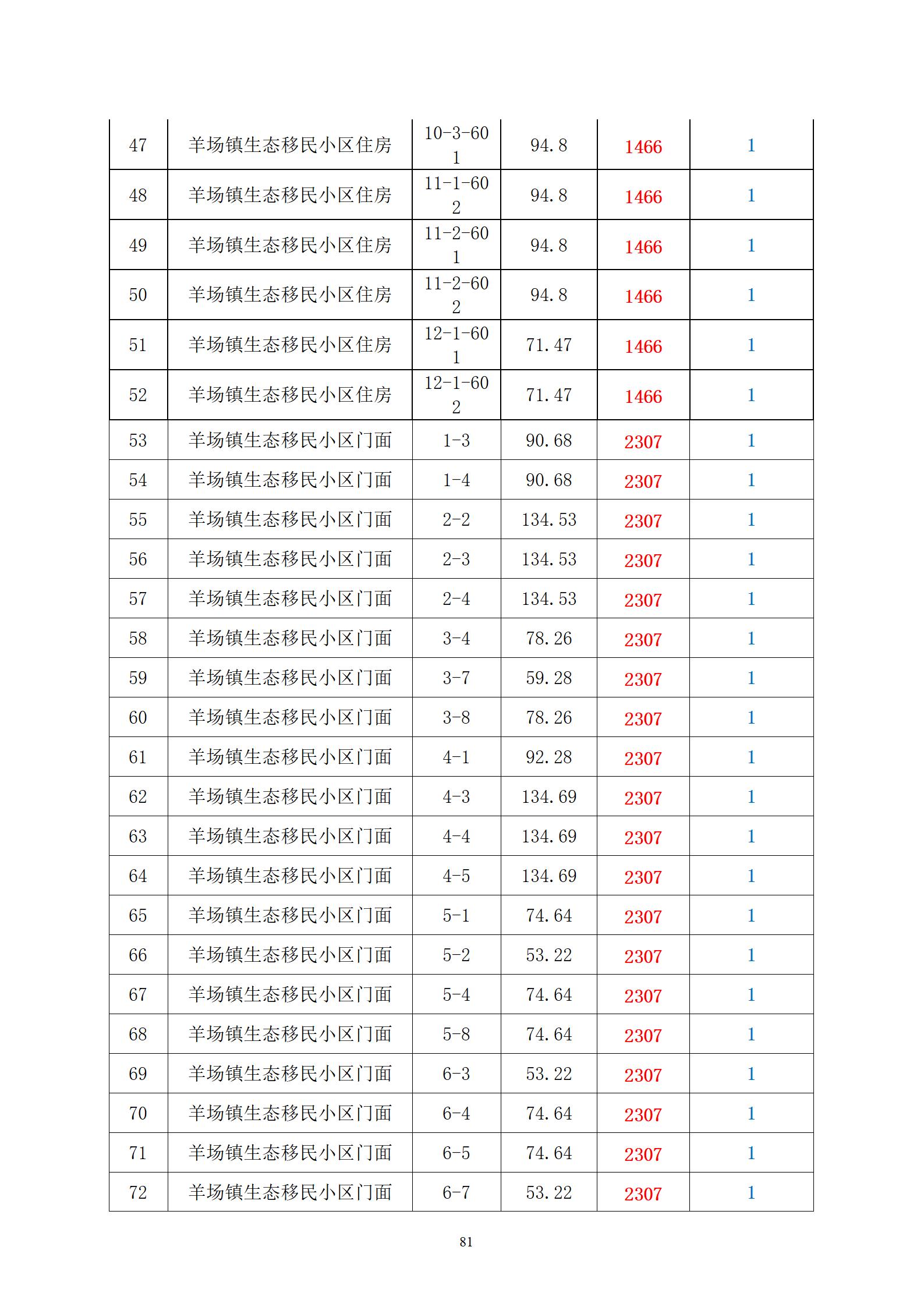 拍品编号24-107:羊场镇生态移民小区住房、门面