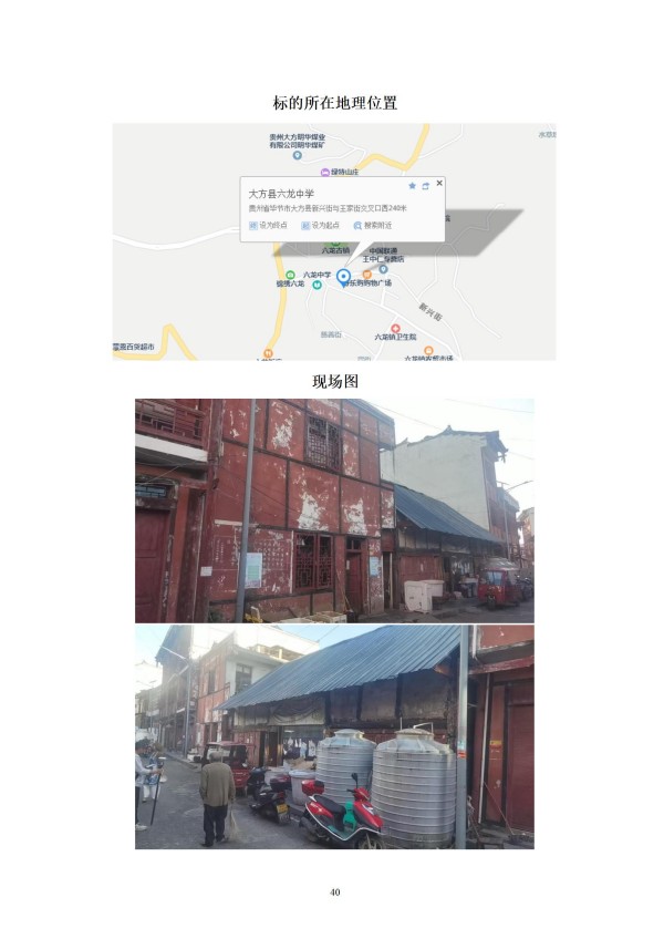标的位于大方县鼎新乡中心村。建筑面积:58.52㎡,土地面积:77.13㎡,建筑结构为砖木结构,总层数为1层,土地性质为划拨。